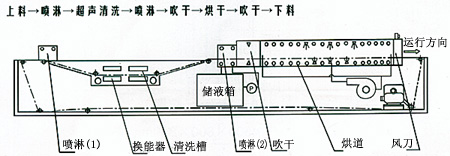 工藝:噴淋清洗-超聲清洗-噴淋漂洗-噴淋漂洗-吹干劈水-熱風烘干